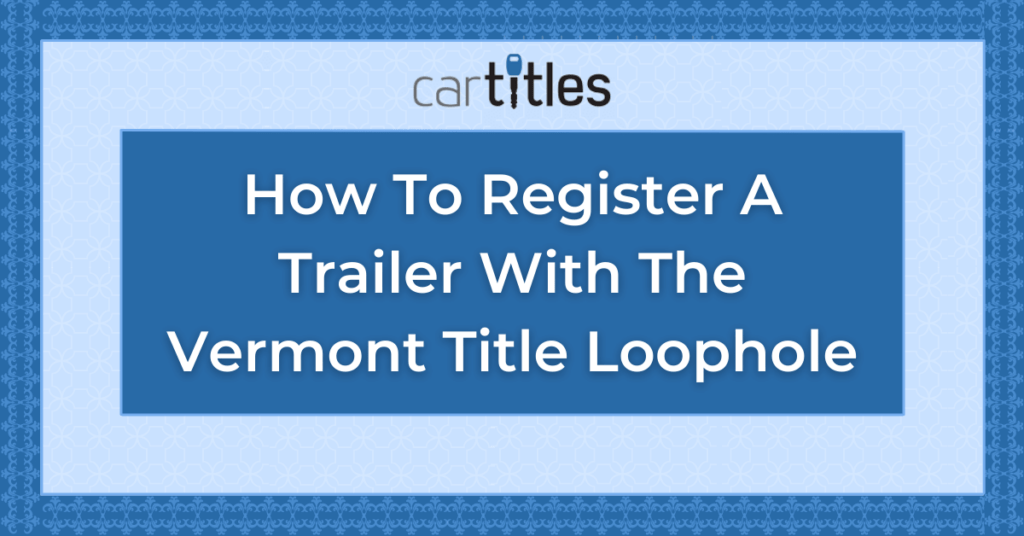 Can you register a trailer in Vermont using the Vermont title loophole? Trailers can be registered in Vermont by both residents and non-residents. The Vermont title loophole is a common way for non-residents to obtain a title for a trailer that was missing the old title. Using the Vermont title loophole, you can get a title for your 15-year-old or older trailer using your bill of sale, even if you don’t have the original title.