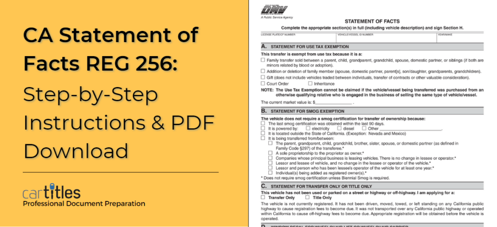 Home » Articles » Titles » CA Statement of Facts REG 256: Step-by-Step Instructions & PDF Download