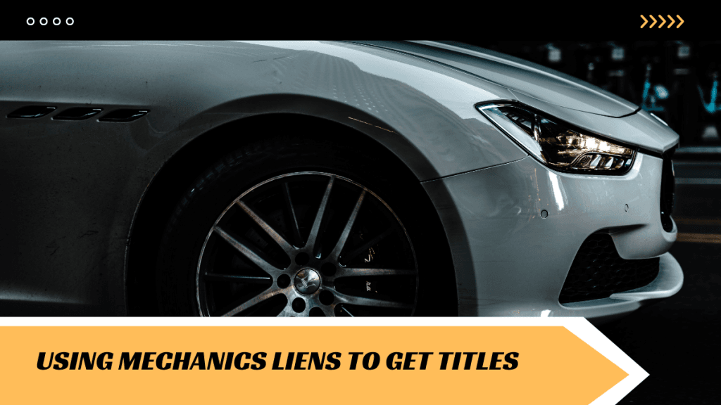 Why Mechanic’s Lien Titles Are ChallengingSo why is it so hard to get a mechanic’s lien title for a vehicle, and why is it not always the best way to try to get a title? For many years, repair shops, garages, and towing companies have used the mechanic’s lien or towing lien process to get titles for vehicles. A lot of times they thought the vehicles were abandoned, and they wanted to get a title. They even sometimes took payments from outside parties to go through a fake mechanic’s lien process to get a title. A lot of times people with title problems will ask, “Well, can I just put a mechanic’s lien on the vehicle, or I’ll just file for an abandoned mechanic’s lien?”