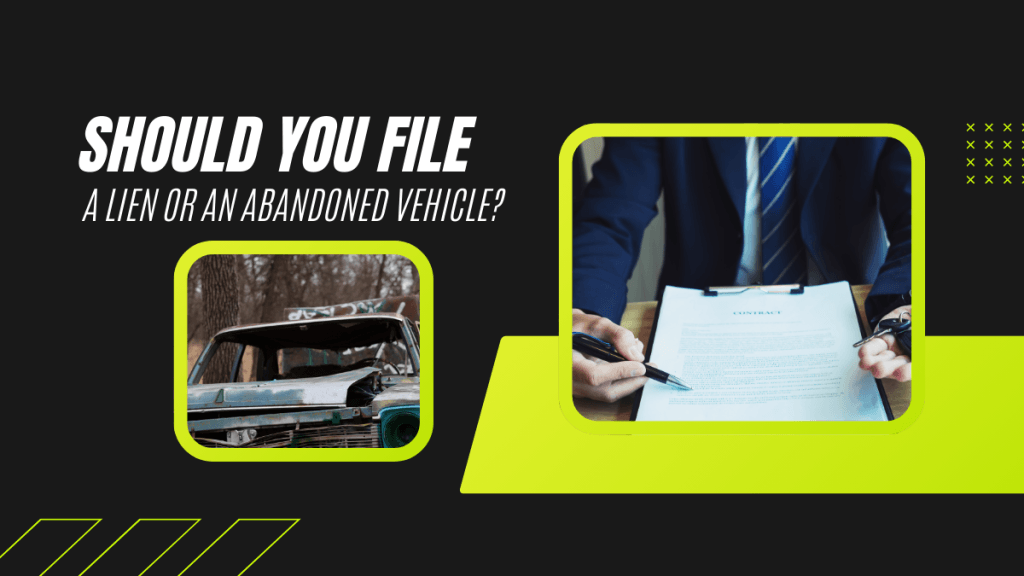 It’s Not Abandoned if You Bought ItThat vehicle is not abandoned—you bought it. Even if somebody brings a car to your business or parking lot, or if you had a vehicle that was left for storage and the person didn’t pay their bill, that’s really not an abandoned vehicle. That is a storage lien.