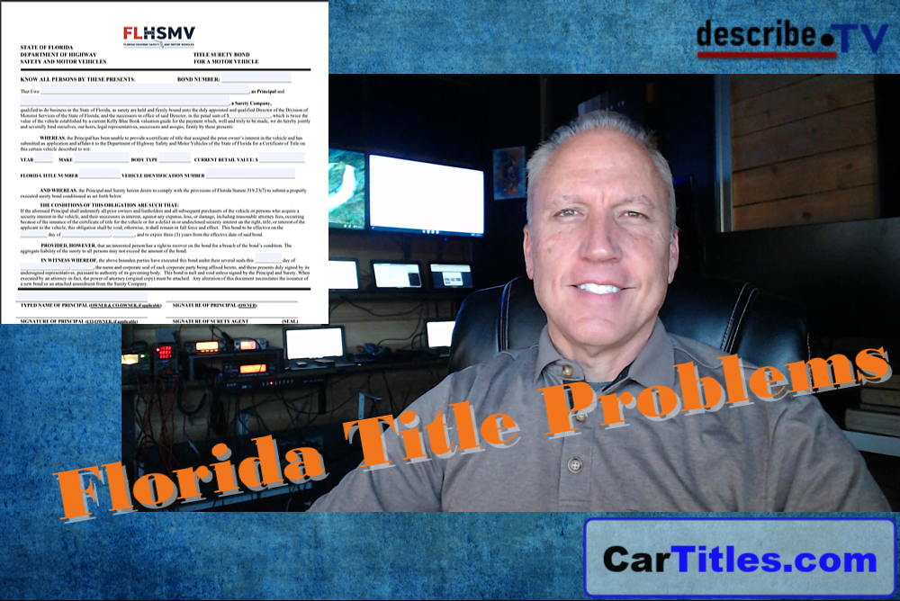 Title Solutions in FloridaSo if you are in the state of Florida and you have a vehicle that has a title problem what do you do? Fortunately for you in the State of Florida you have two very specific processes that are provided for you by the Florida DMV and/or your local County to be able to get a title for a vehicle—a legal title certificate—without having the old title, which is very, very crucial.