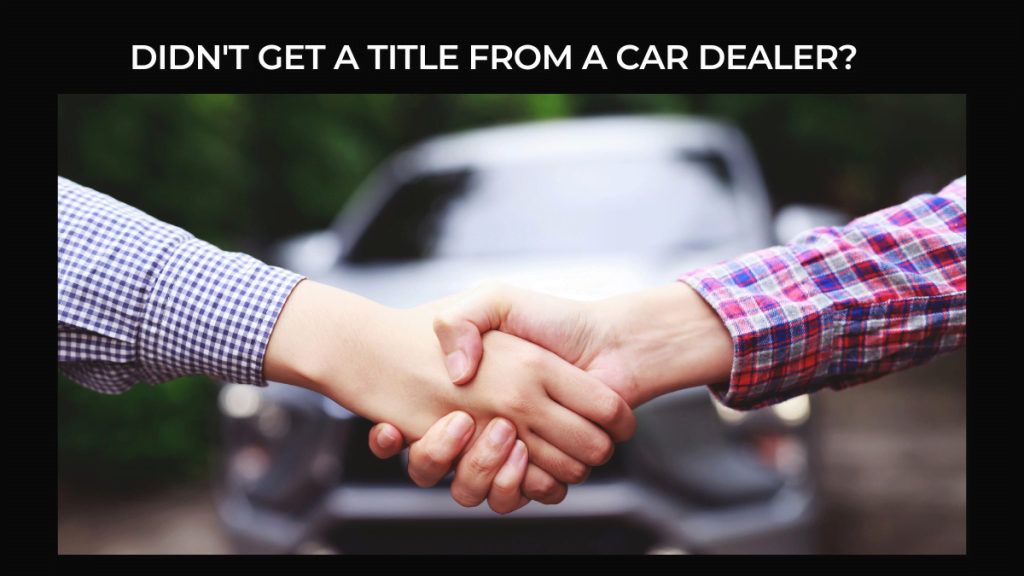 Seeking AssistanceSo make sure you’re protecting yourself. If you do decide to purchase a vehicle without a title, be aware that your money’s at risk until you actually get that title in your hand. And there’s ways to do it. A lot of times it works. You know, 70, 80, 90% of the time it works, but sometimes there’s a gotcha on a vehicle: a lien, a salvage, parts only, maybe some claim against the vehicle, maybe probate. A lot of things can come up.