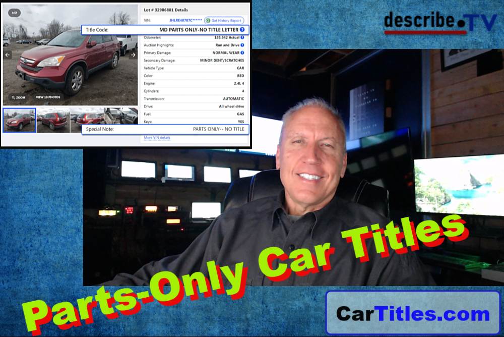 What If You Already Bought a “Parts Only” Vehicle?But what if you come across one or you already bought one that’s parts only? What can you do? Well, you have to be very careful because if it is listed as parts-only and it’s registered in the United States title system as a parts-only vehicle, all 50 states are aware of it. If you try to get a title, they’ll find out about it, and they won’t issue a title for a parts-only vehicle.